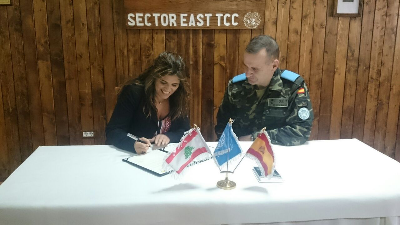 ثمّ قدمت العاقوري دروعا تقديرية لبيريث دي اغوادو وباقي ضباط الكتيبة، وفي الختام وقّعا على سجل التسليم.