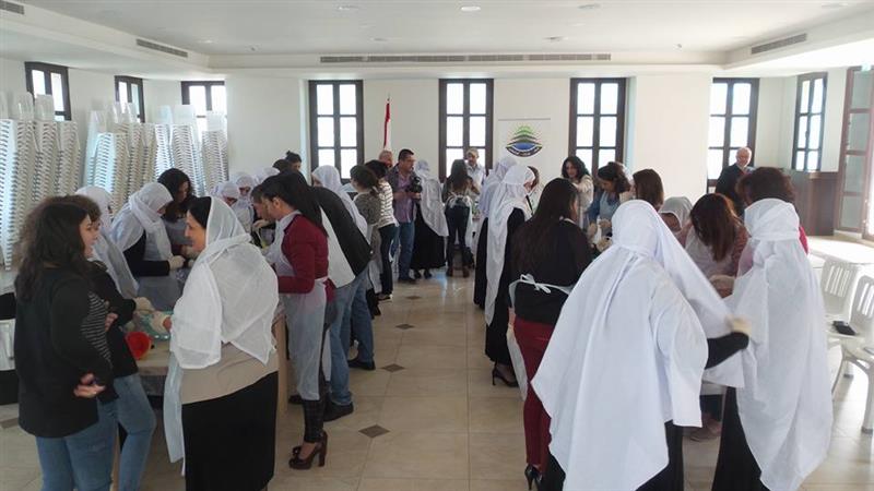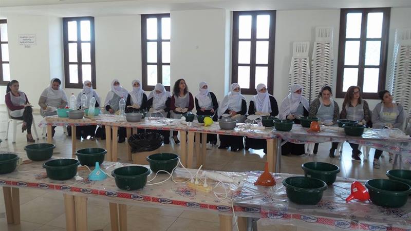 اتحاد بلديات الحاصباني ومن اجل انجاح هذا التوجه، نظم في قاعة دار حاصبيا دورة مجانية لتصنيع الصابون على البارد، وبزيت الزيتون الصافي، شاركت فيها حوالي 50سيدة من حاصبيا وقرى المنطقة، اضافة الى وجوه اجتماعية وفعاليات نسائية ورؤساء جمعيات ثقافية، اشرف عليها الخبيران في هذه الصناعة مازن حلواني ونبيل سري الدين، بحيث يتم تحضير الصابون من دون طبخه على النار، وذلك عبر اذابة الصودا الكاوية في الماء وتركها لمدة نصف ساعة بعد التحريك، بعدها يضاف الزيت على هذا الخليط وبشكل هادئ، على ان يحرك لفترة ما بين النصف ساعة الى 45دقيقة، وحتى يجمد قليلا، يضاف اليها العطر المناسب ليسكب من ثم الخليط في قالب خشبي، وعلى مدى 12ساعة، يقطع بعدها قوالب صغيرة، على ان يبدا استعمال هذا الصابون بعد اسبوع من التحضير.