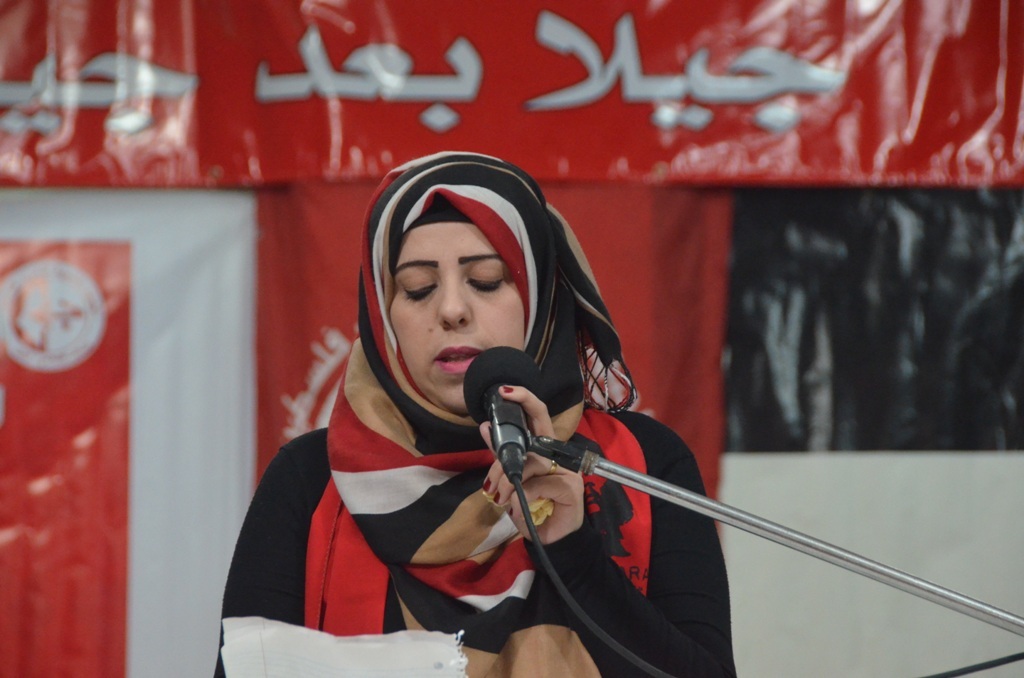قدمت للحفل حنين عزمي عضوة اللجنة الإعلامية في منطقة صيدا، حيث رحبت بالحضور كل باسمه وما يمثل، وباسم الجبهة الشعبية لتحرير فلسطين وجهت التحية لشهدائها وأسراها و جرحاها، مشددة على أن مدرسة الجبهة الشعبية باقية على عهدها تمارس كافة أشكال النضال