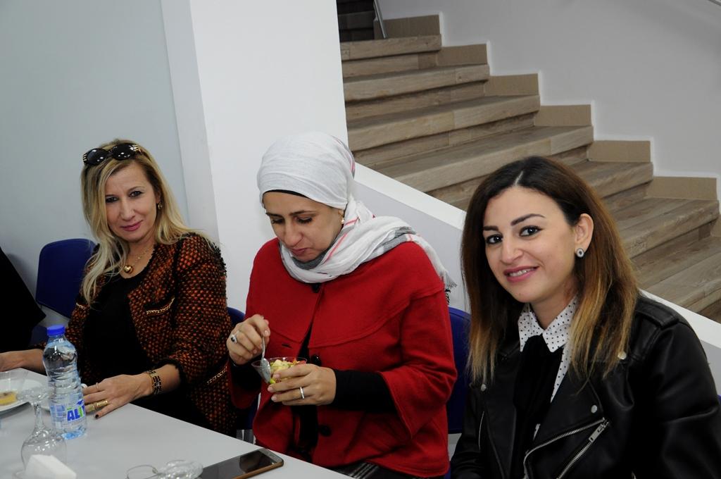 وكان في استقبال الإعلاميين رئيسة الجمعية عرب كلش، وأمينة السر في الجمعية ومسؤولة لجنة المطبخ رولا الشماع، ومديرة الجمعية مي حاسبيني وعضوات مجلس ادارة الجمعية.