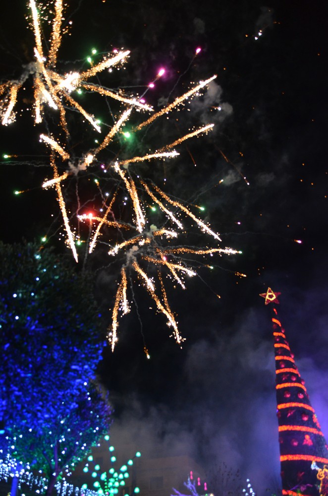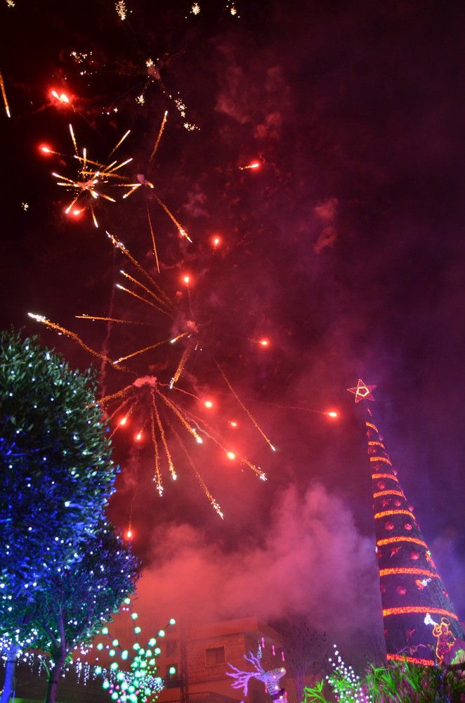 وعلى وقع الاغاني الميلادية رقص ثلاثون بابا نويل وشخصيات كرتونية محببة للاطفال وأُضيت شجرة الميلاد العملاقة و معها أضيئت زينة الطريق العام وبيوت قديمة مجاورة للشجرة. .