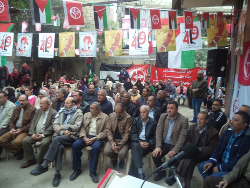 كلمة الجبهة الشعبية لتحرير فلسطين ألقاها عضو اللجنة المركزية العامة هيثم عبده، افتتحها بتقديم التحية للحضورومشاركته انطلاقة الجبهة التاسعة والأربعين، وإزاحة الستار عن النصب التذكاري لشهداء الجبهة الشعبية لتحرير فلسطين في منطقة صيدا.