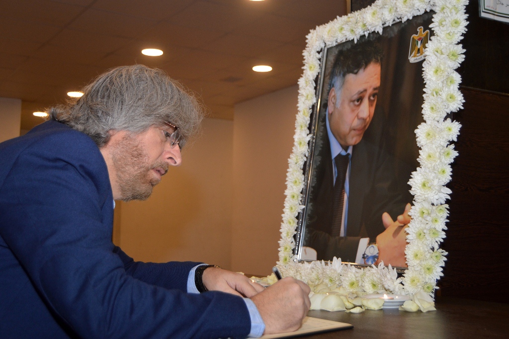 وكتب الفنانون في سجل التعازي الخاص بسفارة دولة فلسطين كلمات مؤثرة تعّبر عن مدى محبتهم للراحل الذي كان حلمه زيارة فلسطين وأن يحتضنه ترابها.