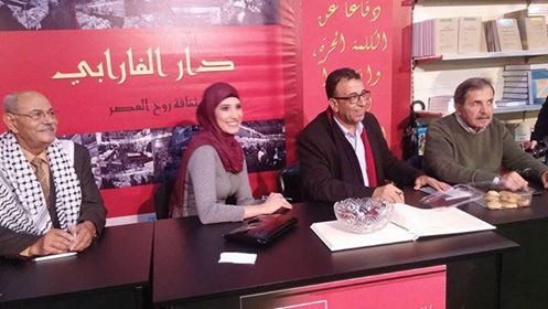 تحت عنوان حمل عبارة ناجي العلي "الطريق إلى فلسطين ليست بالبعيدة أو بالقريبة إنما بمسافة الثورة".. أقامت دار الفارابي ومنظمة الشبيبة الفلسطينية يومًا ثقافيًّا فلسطينيًّا، في معرض بيروت العربي الدولي للكتاب، مركز البيال، جناح دار الفارابي، وذلك احتفاء بالكتاب صلاح صلاح الذي وقع كتابه " من ضفاف البحيرة إلى رحاب الثورة"، وماهر الشريف الذي وقع كتابه" فلسطين في الكتابة التاريخية العربية"، ووداد طه التي وقعت رواية" حرير مريم"، وتكريمًا للكاتب والروائي والفنان التشكيلي الفلسطيني مروان عبد العال لمناسبة نيله جائزة القدس للثقافة والإبداع.