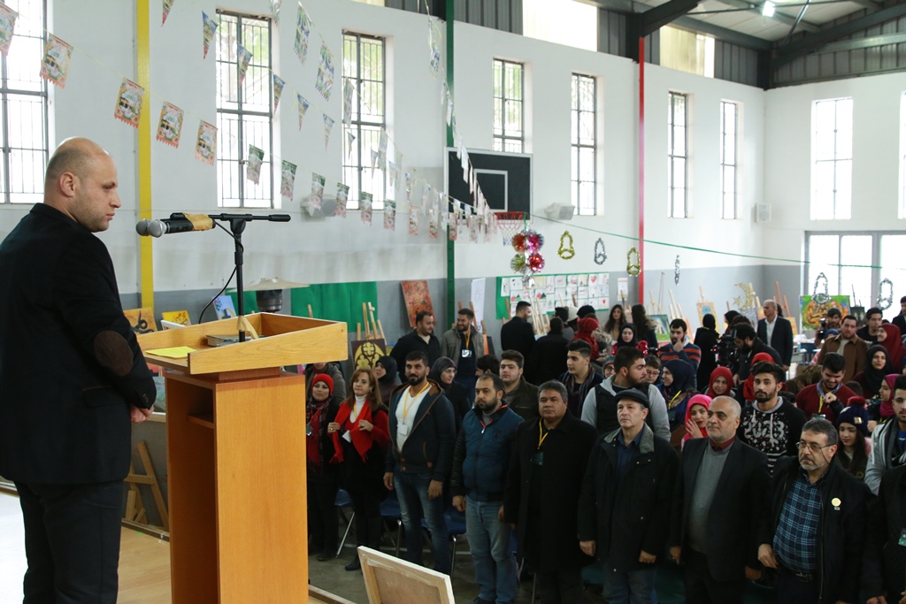 مع تناول طعام الغداء في الاكاديمية بإدارة الاستاذة فاطمة حيدر ، تجمع الفنانون والمشروفون والطلاب المشاركين في صالة العرض الرئيسية، بدأ حفل التكريم مع تقديم للاستاذ حسن كركي وتلاوة قرآنية من طالب في الاكاديمية فالنشيد الوطني اللبناني .