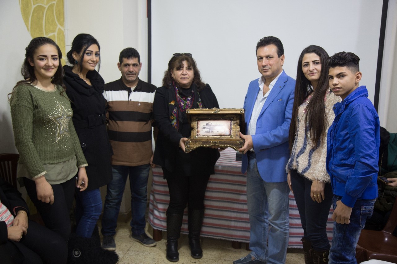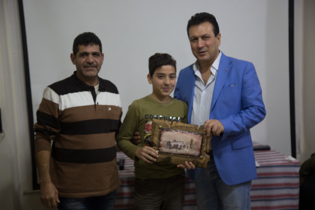 ثم قدّم الأخ ثائر الغضبان درعًا تكريميًّا للراحل الفنان محمود سعيد، تسلمته حرم الراحل السيدة زهرة محمد، بمشاركة الجميع، ووجهت خلالها كلمة شكرت فيها الملتقى الفلسطيني للشطرنج، وللأخ ثائر الغضبان على اهتمامهم بإحياء ذكرى الراحل محمود سعيد، وفي ختام الحفل قدّمت الفنانة لارا زمزم والفنان أيمن أمين بعضاً من الأغاني الوطنية .