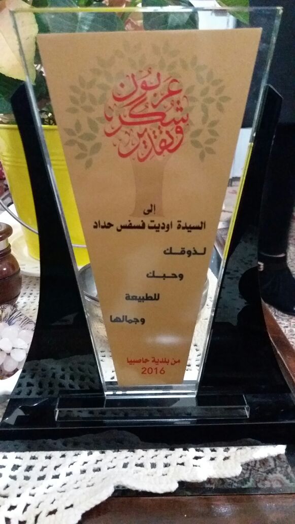 بمبادرة طيبة منها، كرّمت بلدية حاصبيا السيدة اوديت حداد على حبها للطبيعة ، في زيارة قام رئيس البلدية يرافقه بعض اعضاء البلدية الى منزلها في حي العين منوهاً بالعمل الجميل التي تقوم السيدة حداد في تجميل جانبي الطريق قرب منزلها بأجمل الورود على مدار السنة ، مؤكداً على ان الانسان الصالح للمجتمع هو من يقوم بمبادرات فردية تترك اثراً جميلاً في نفوس الاخرين.