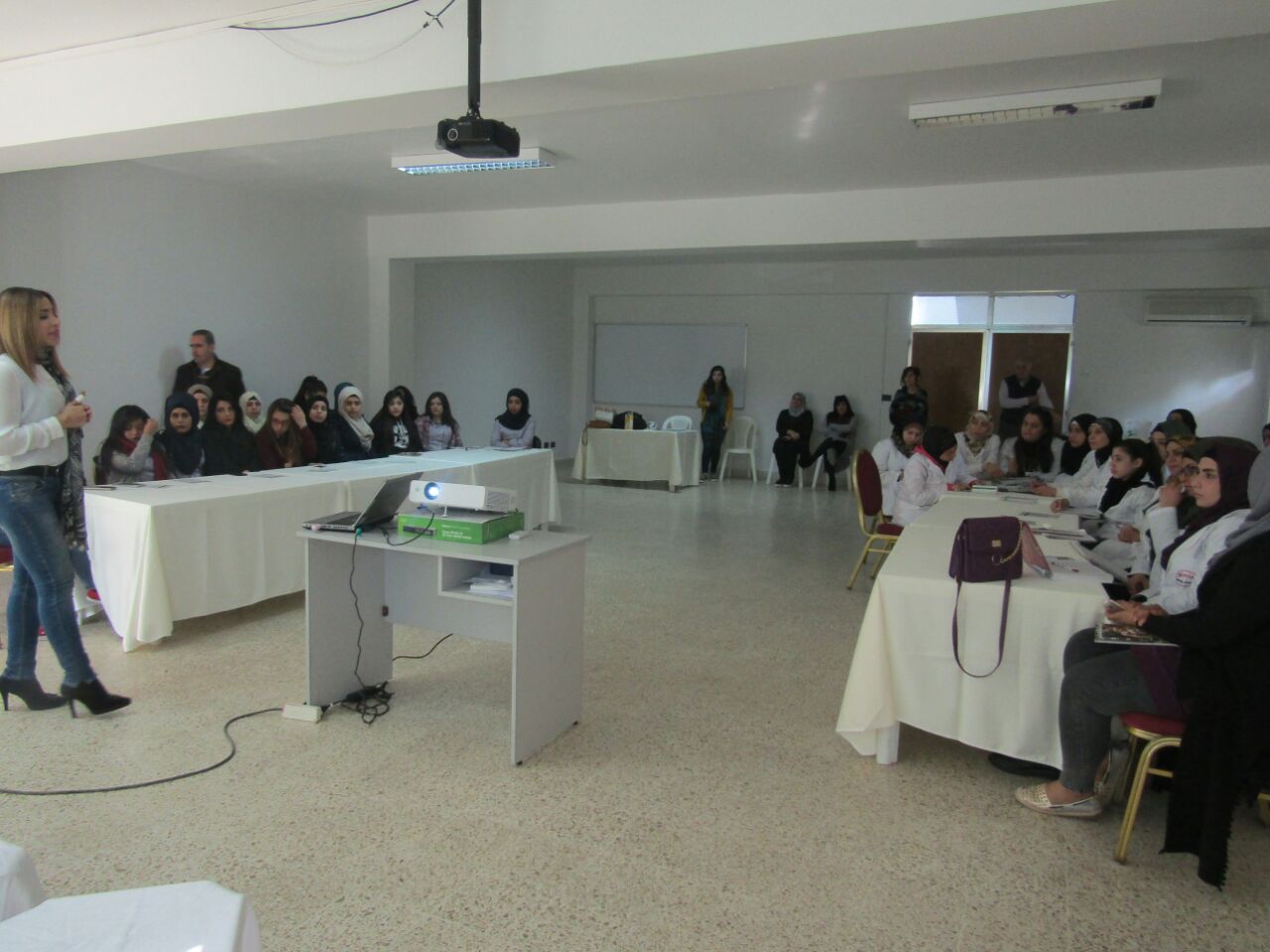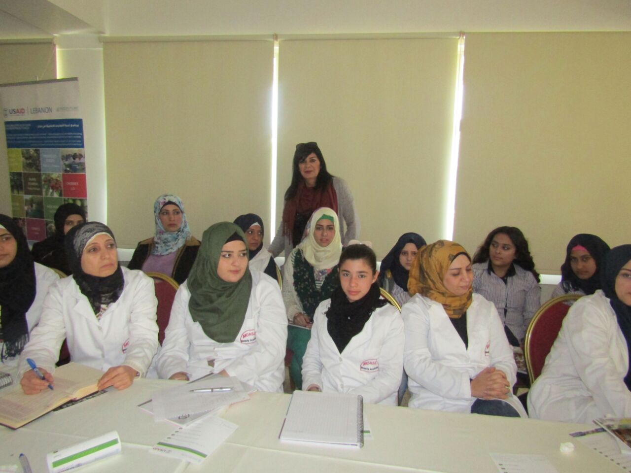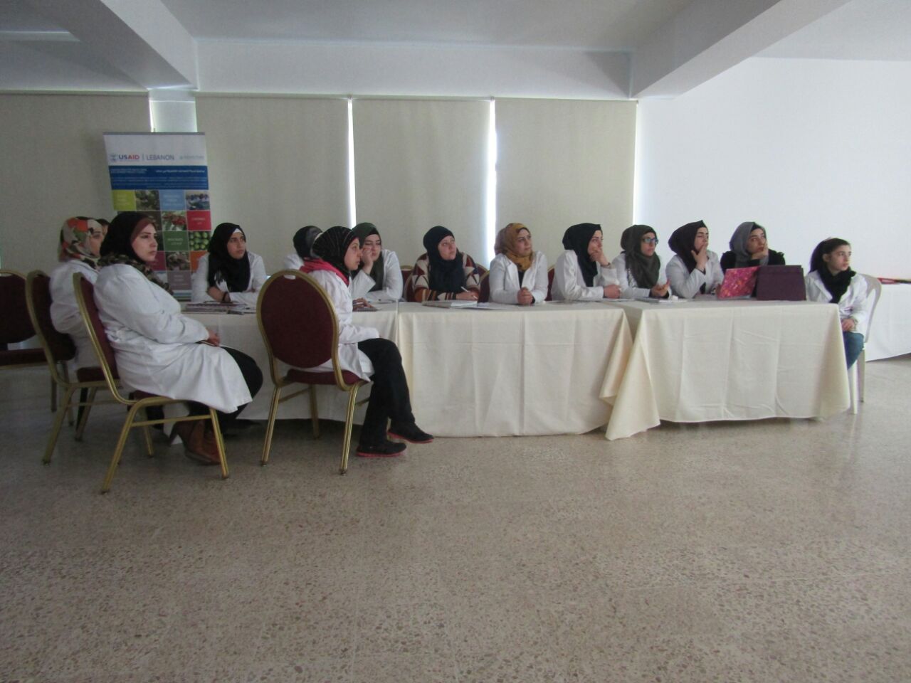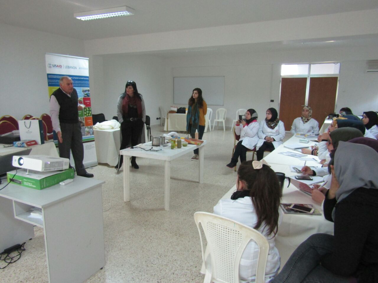 افتتحت الورشة أخصائية التجميل في الأكاديمية السيدة سميرة بصار عارضة للمتدربات تأثير المستحضرات التجميلية الطبية على البشرات بأنواعها، بعدها قامت الآنسة جورجيت لحود وفريق عمل Usaid بتقديم عرض مفصل حول أهمية فاكهة الأفوكا على الشعر والبشرة.
