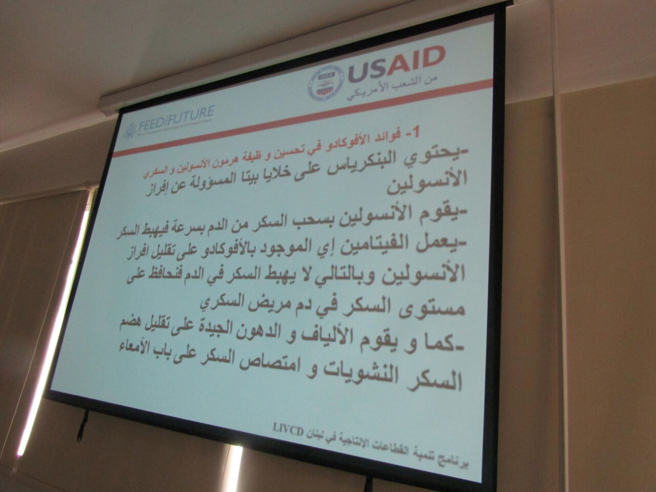 بدورها أخصائية التغذية لينا رمال شرحت للمتدربات تأثير التغذية الصحية على الجمال مركزة على الفيتامنات والألياف الموجودة في ثمرة الأفوكا.