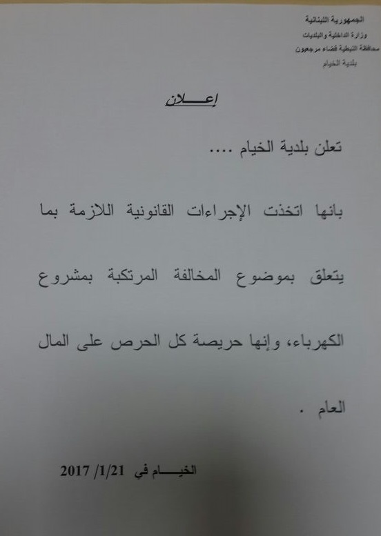 في الوقت الذي كان ينتطر فيه الخياميون أن تتخذ بلديتهم قرارات حاسمة، تعيد فيه النظر بالتعيينات والتوظيفات التي كانت وما زالت تجريها، معتمدة على المحاصصات والمحسوبيات والانتماءات الفئوية والتي تؤدي إلى ما لا تحمد عقباه، أعدّت البلدية قراراً هزيلاً جرى تداوله على صفحات الفايسبوك والواتس اب، قبل توقيعه.