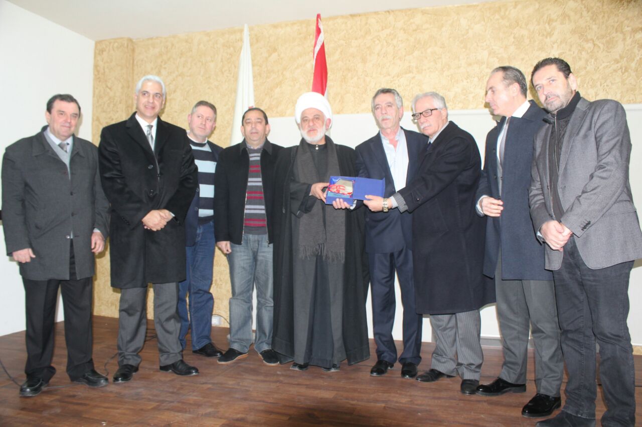 وفي ختام الحفل قدم الدكتور علي سلوم والحاج صادق اسماعيل والاستاذ سعد الزين والدكتور علي وهبي درعا تقديريا للمؤلف على جهوده ونشاطه الدائم