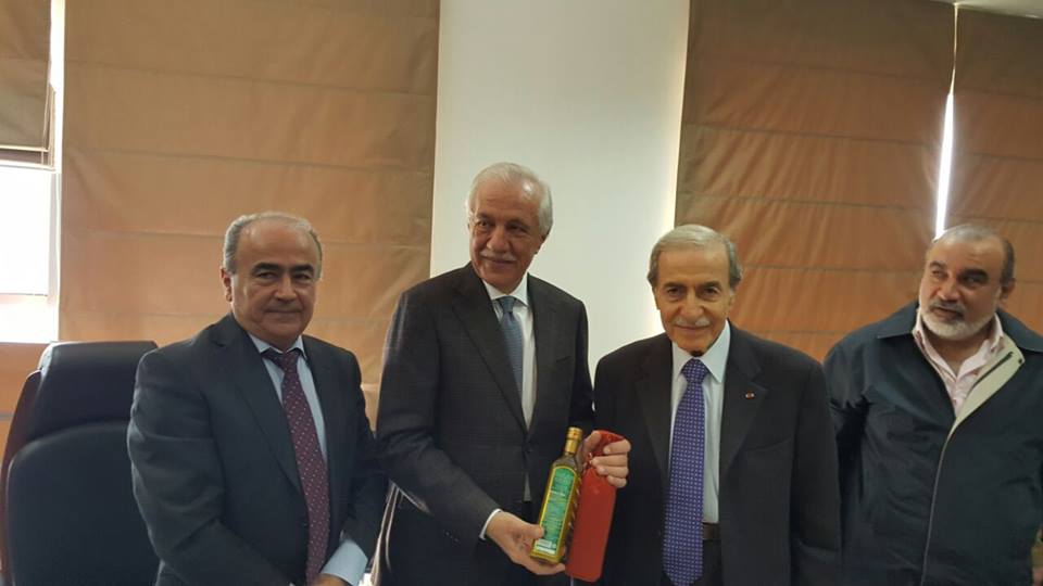ثم قدم النائب الخليل للوزير غازي زعيتر هدية رمزية من زيت الزيتون المنتج في بلدة عين جرفا والمعبأ في قنان زجاجية يمكن تسويقها في السوق المحلية.