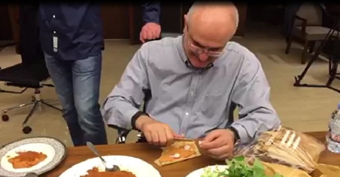 بالفيديو... الحاج علي حسن خليل يحضّر بنفسه العشاء لزواره 7\3\2017 النهار Google+TwitterFacebookWhatsApp أقام وزير المال علي حسن خليل جلسة مباشرة لمتابعيه على حساباته على وسائل التواصل الاجتماعي. وفي نهاية الجلسة قام بنفسه بتقديم "الملسة" الجنوبية لزواره.