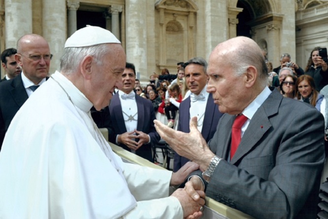 في خطوة استكمالية لحملة مؤسسة عامل الدولية للتضامن الإنساني مع اللاجئين، التقى د. كامل مهنا رئيس مؤسسة عامل الدولية قداسة البابا فرنسيس في الفاتيكان، شاكراً إياه على التشجيع الذي قدمته الفاتيكان لترشيح مؤسسة عامل لجائزة نوبل للسلام عام 2016 والتي جددت ترشيحها للعام الحالي تحت عنوان التضامن الإنساني بين الجنوب والشمال مع اللاجئين والفئات المهمشة، لإعادة بناء النموذج الإنساني الكفيل بتخليص العالم من خطاب الشوفينية والعنصرية الذي يهدد السلام في كل مكان من العالم.
