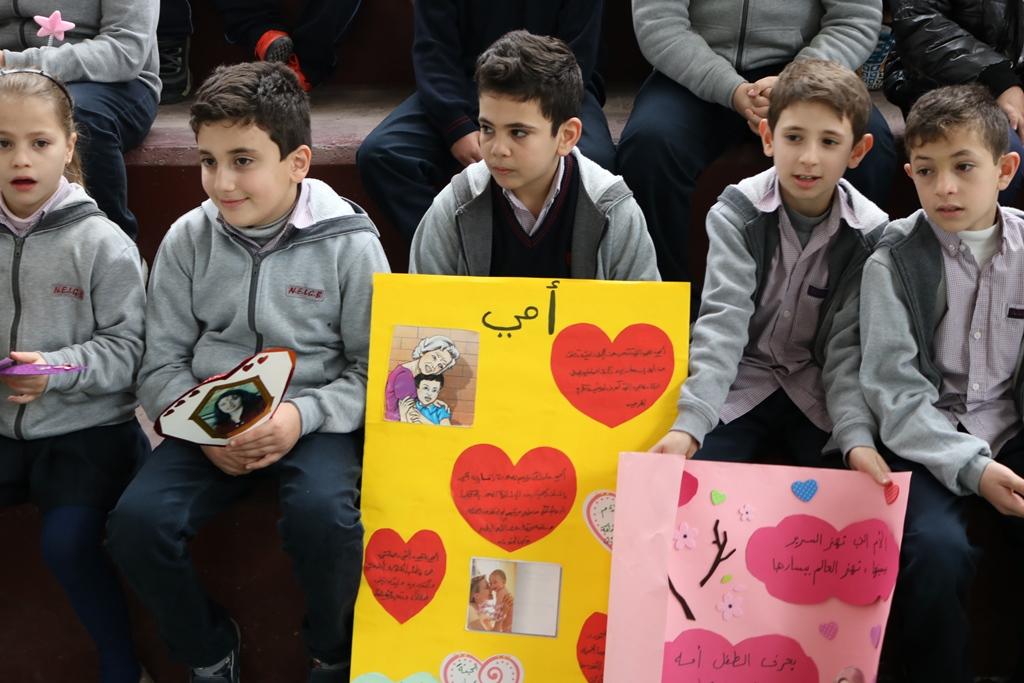 وقدّم طلاب القسمين أغان من وحي المناسبة وعدداً من القصائد الشعرية باللغتين الانكليزية والعربية، حاملين صور أمهاتهم ولوحات تدل على مدى محبتهم لـ "الأم".