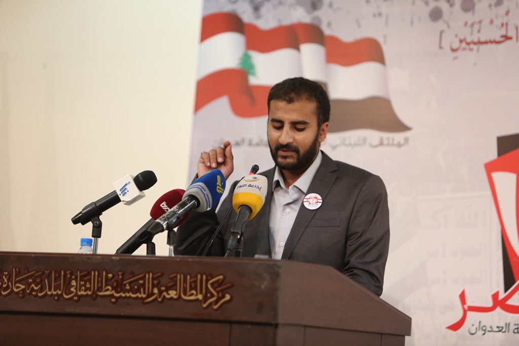 بعد تلاوة من القرآن الكريم والنشيدين اللبناني واليمني وتقديم من الاعلامي اليمني عبد السلام حجان القى كلمة الماتقى اليمني علي المحطوري الذي شرح ابعاد العدوان الجائر على الشعب اليمني . وقال في العام الثاني نتطلع الى مزيد من الانتصارات ووجه التحية الى الشعب اللبناني المقاوم والى سيد الوفاء .