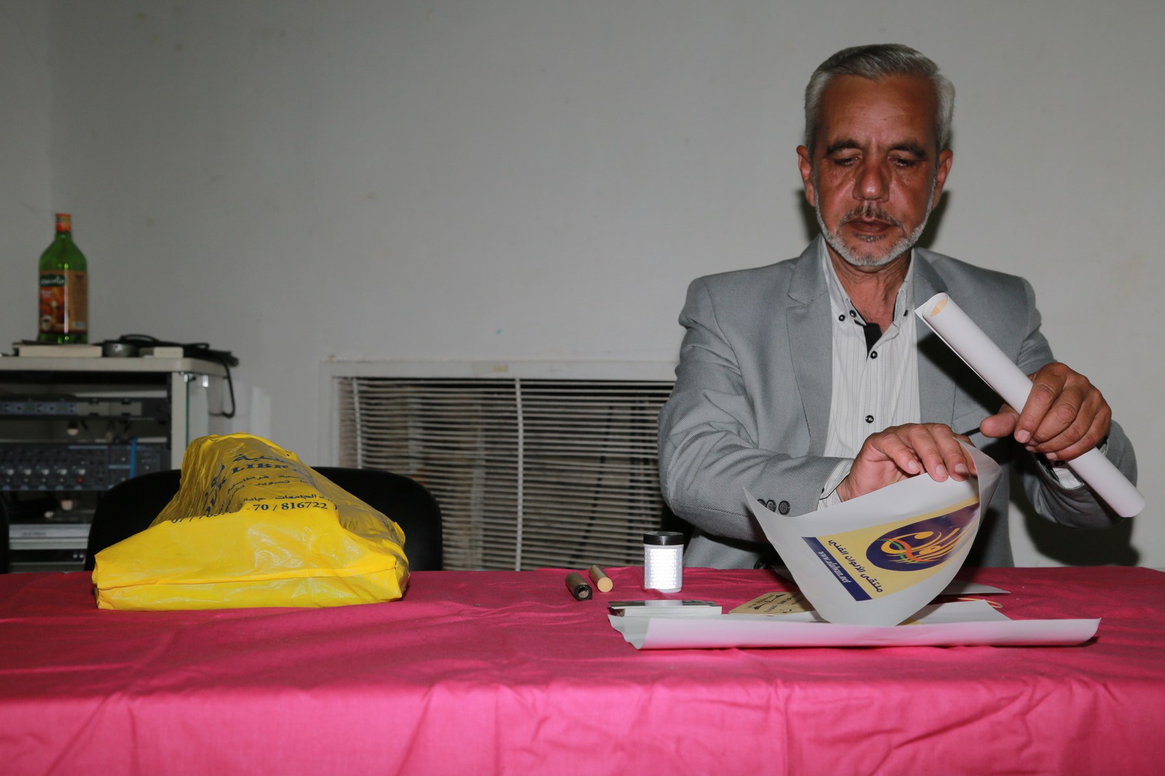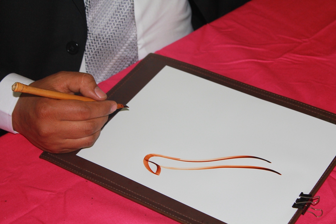 وشارك الخطاطان حسين يونس وباسم بلدي بكتابة اسماء المشاركين والضيوف .