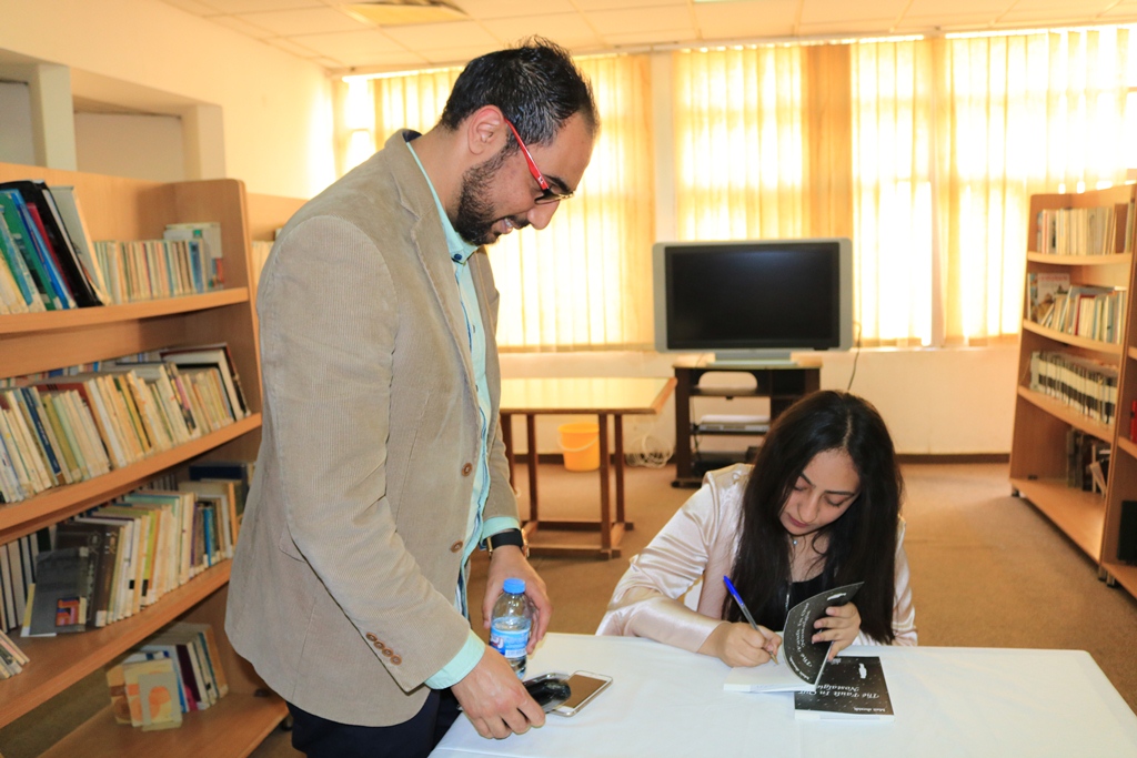 وألقت مي شريدي كلمة باللغة الإنجليزية تحدثت فيها عما يحويه الكتاب، وفي الختام وقعت كتابها للحضور.