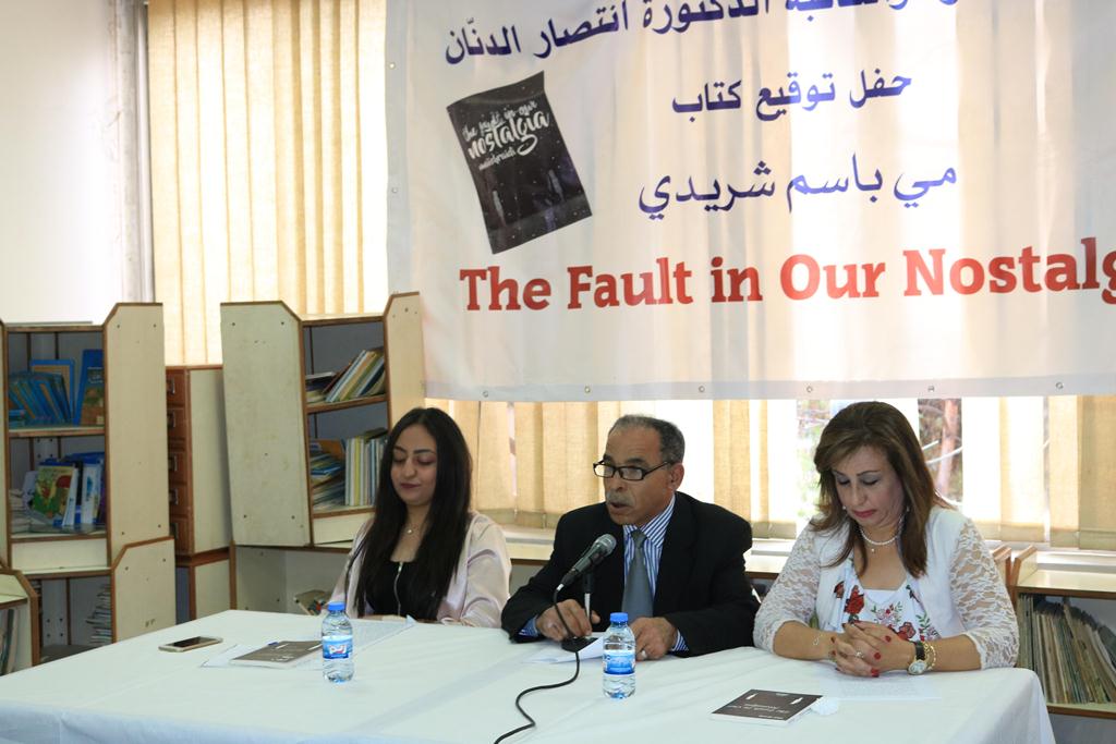 برعاية الشاعرة والكاتبة الدكتورة انتصار الدنان، وقّعت مي باسم شريدي كتابها تحت عنوان "The Fault in Our Nostalgia" في قاعة مكتبة مركز معروف سعد الثقافي بمدينة صيدا، وذلك بحضور مثقفين ومهتمين وعائلة وأصدقاء شريدي.