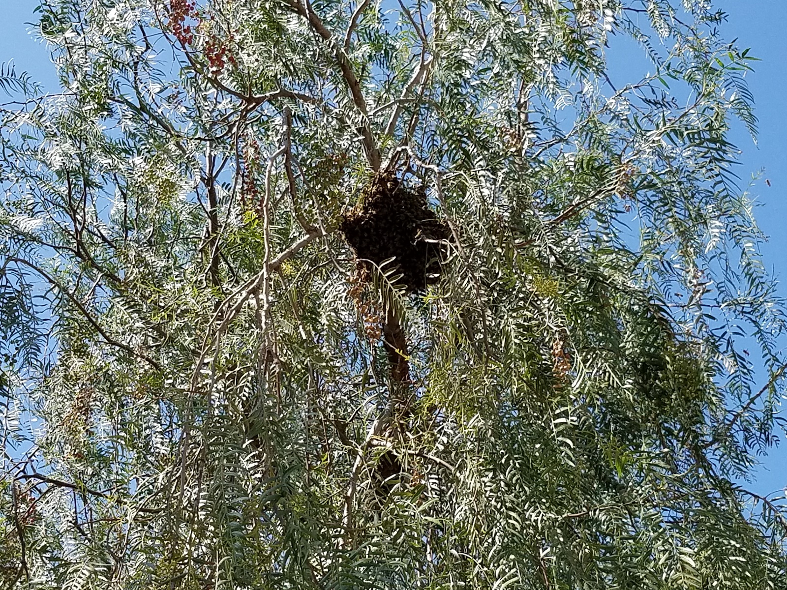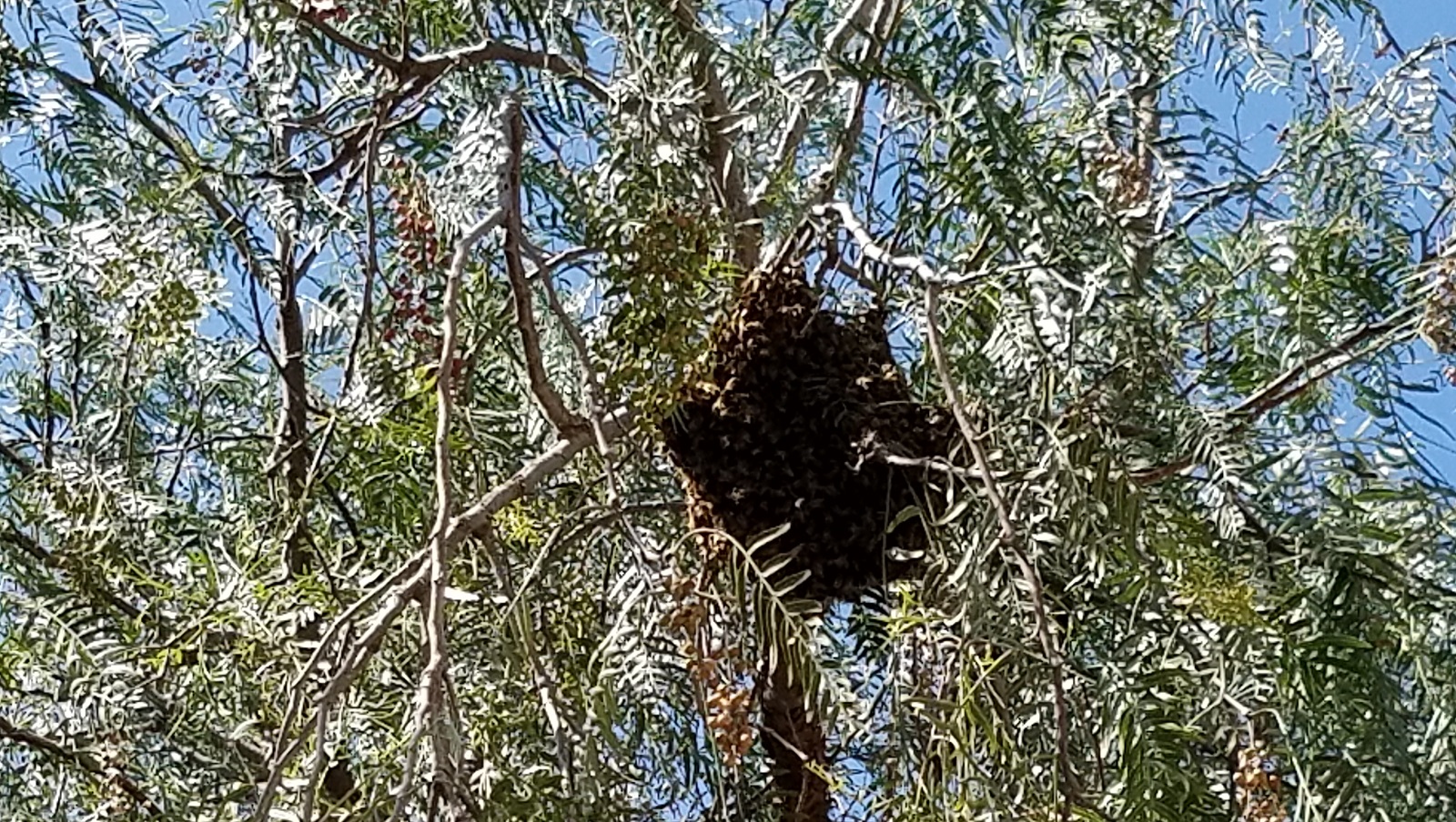 شوهدت بعد ظهر اليوم في الخيام خلية نحل بنت عشها بين أغصان شجرة.. وما تزال موجودة حتى ساعة إعداد هذا الخبر.