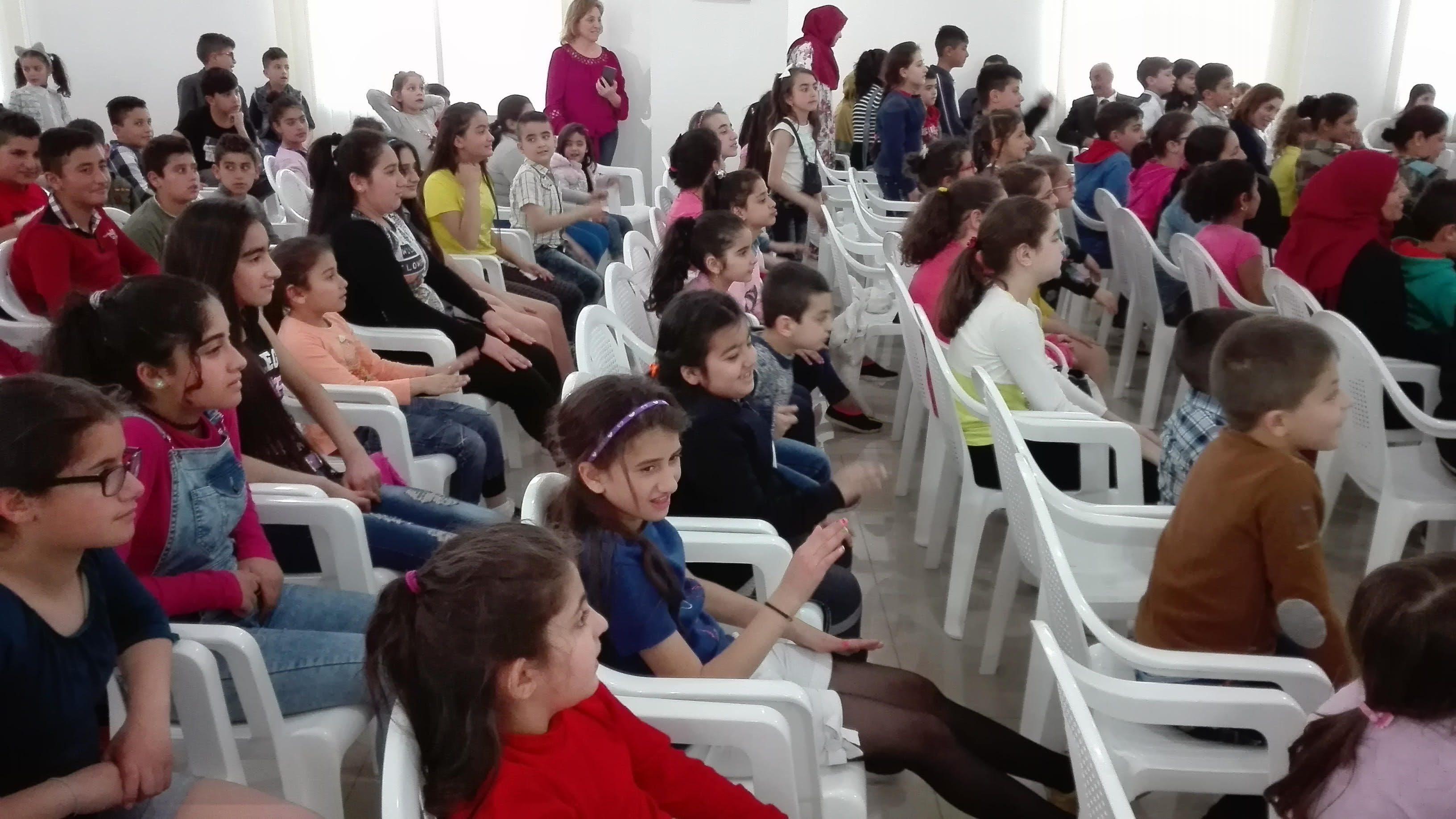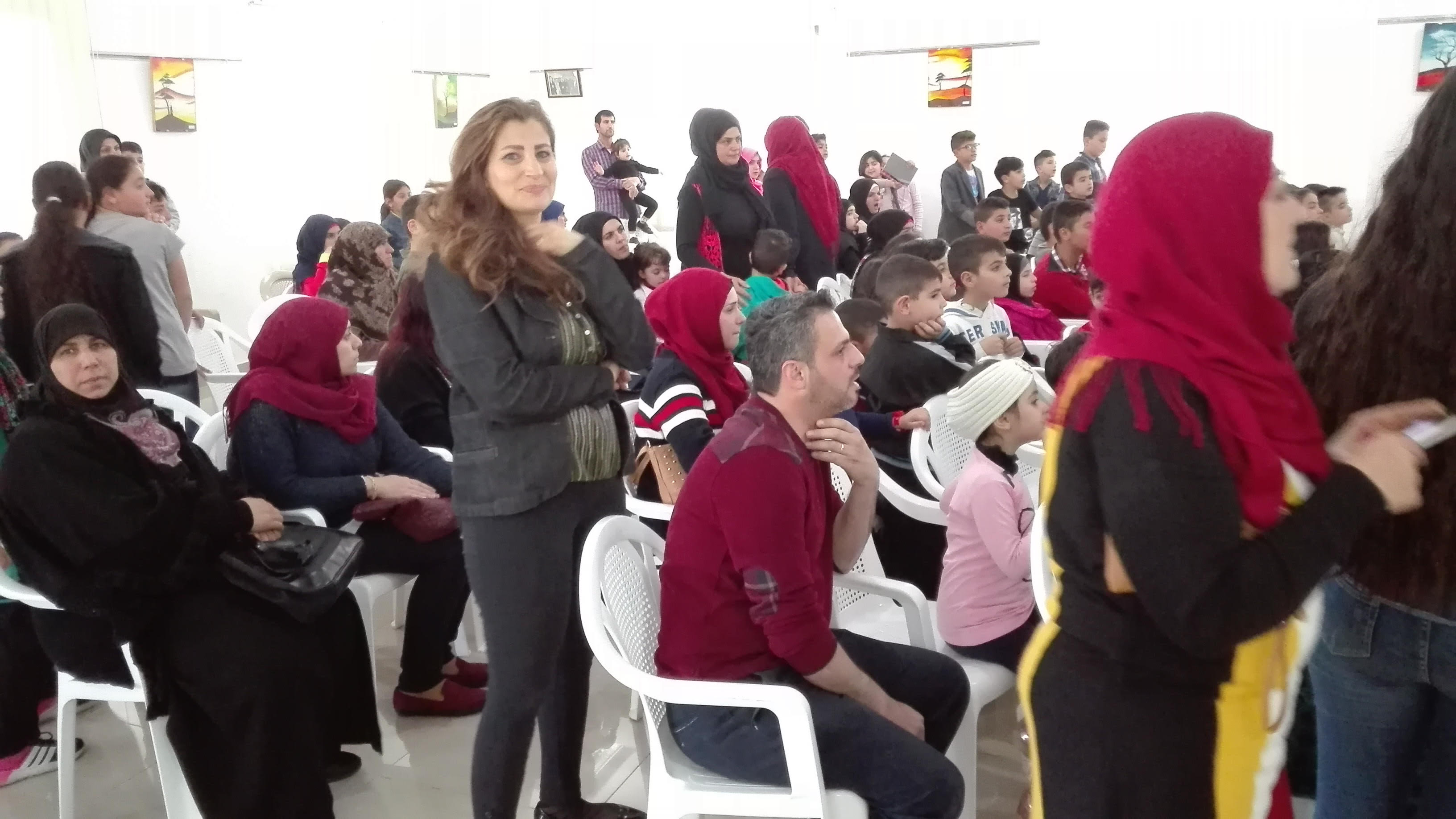 الاطفال هني العيد هني ملائكة السما عالارض شو ما عملنالهم مقصرين من حق طفولتهم علينا نحميهم نعلمهم ونرفه عنهم والاهم نوجهه ونعرفهم على حقوقهم وهيدا كان عنوان المسرحية شتي يا دنيا صيصان الاطفال غنوا وفرحوا وزقفوا وانبسطوا اولا بفرقة الجمعية اللي عزفتلهم النشيد الوطني ومقطوعات موسيقية وتفاعلوا مع المسرحية وانبسطوا كتير وبالآخر كل ولد حضر معنا المسرحية قدمنا له كيس صغير فيه كيك وعصير، همنا ولادنا يربوا بصحة جسدية ونفسية والمسرحيات للاطفال من ارقى الاساليب اللي بتوصل الفكرة للطفل بدون تلقين هوي بيستنتجها.