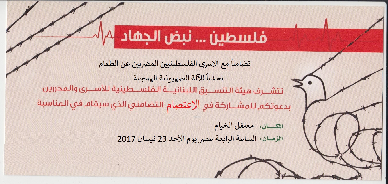 للإعتصام تضامناً مع الاسرى الفلسطينيين المضربين عن الطعام تحدياً للآلة الصهيونية الهمجية