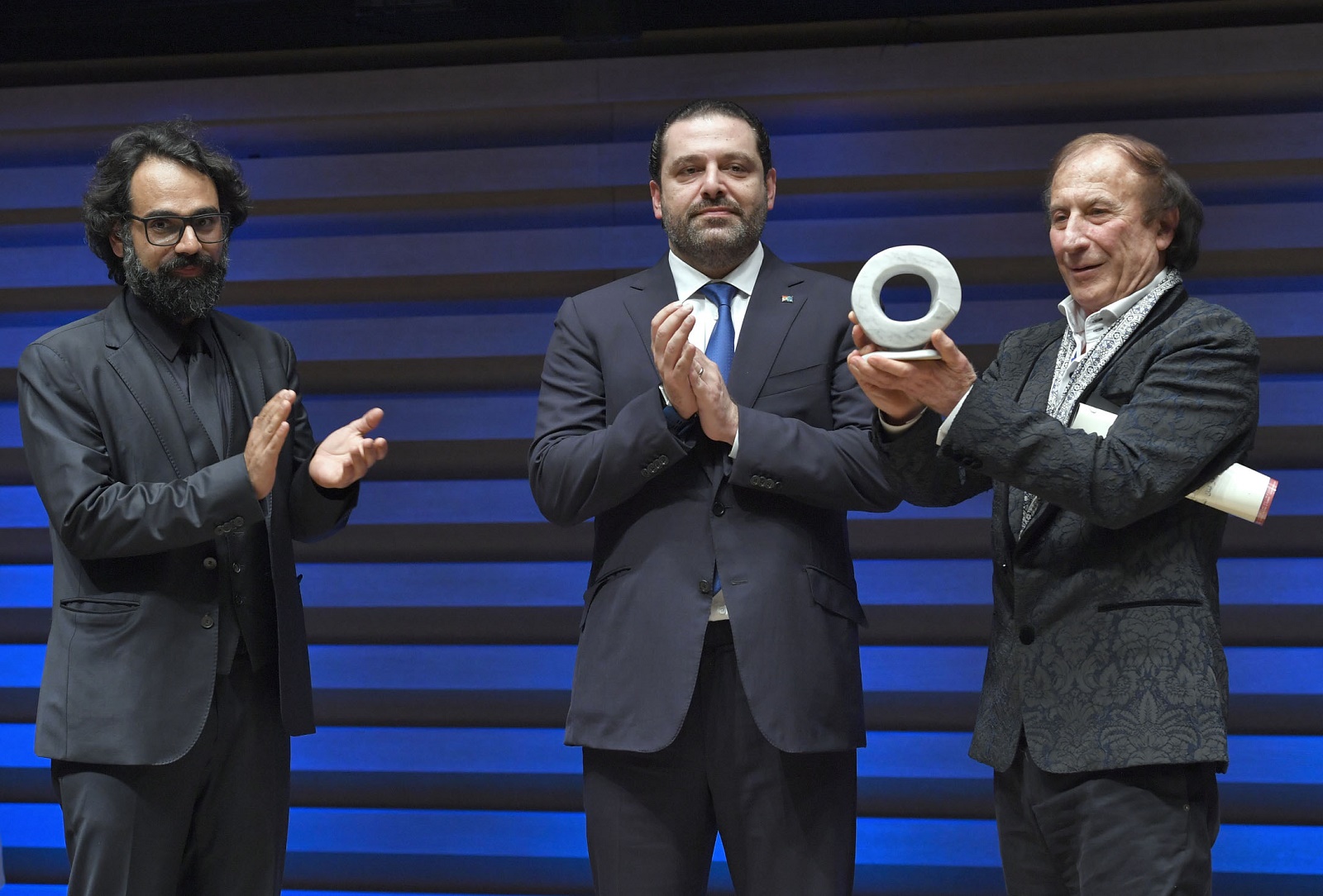 في الختام، قدم كل من الحريري وراجح درعا تكريمية للفنان عربون شكر وتقدير للدور الكبير الذي لعبه في الإبداع والذي يشكل اليوم إرثا ثقافيا هاما للوطن.