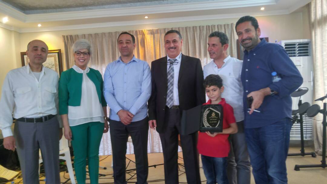 في الختام قدم رئيس النادي الدكتور علي سلوم وامين الشؤون الفنية الاستاذ عبد الجليل شكر وا عضاء الهيئة الادارية دروعا تكريمية للاساتذة الموسيقيين تقديرا لعطائهم المميز