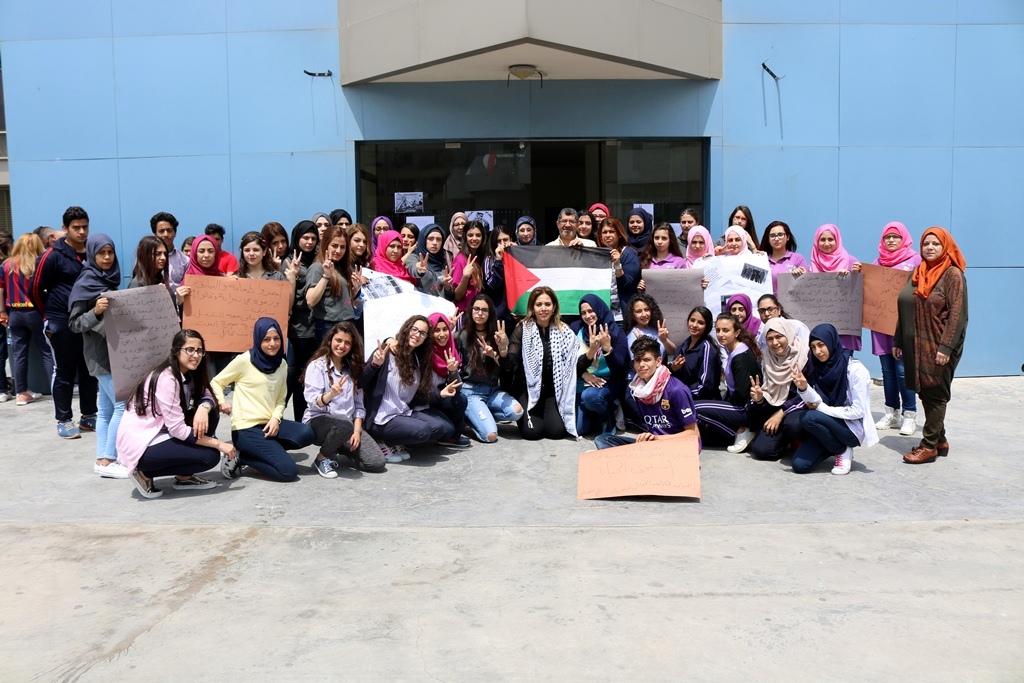 وألقت الطالبة رنا حليمة كلمة وجهت فيها التحية إلى الأسرى الفلسطينيين الذين يخوضون معركة الحرية والكرامة بأمعائهم الخاوية، مؤكدة أن طلاب المعهد والأسرة التعليمية يقفون إلى جانب الأسرى ولو بشكل رمزي تعبيراً علن تضامنهم معهم.
