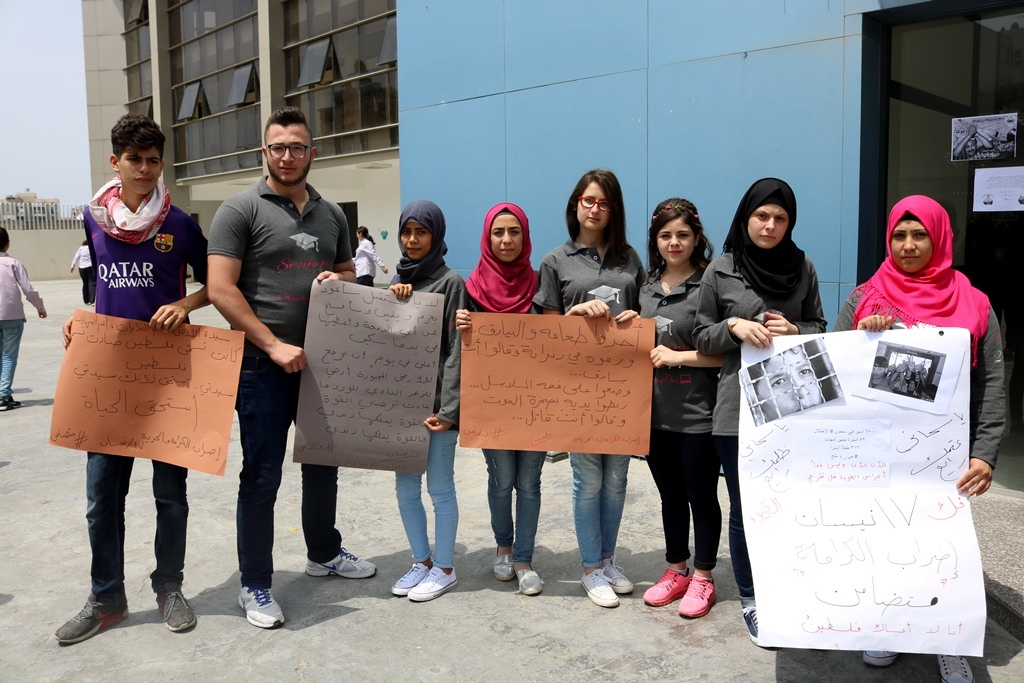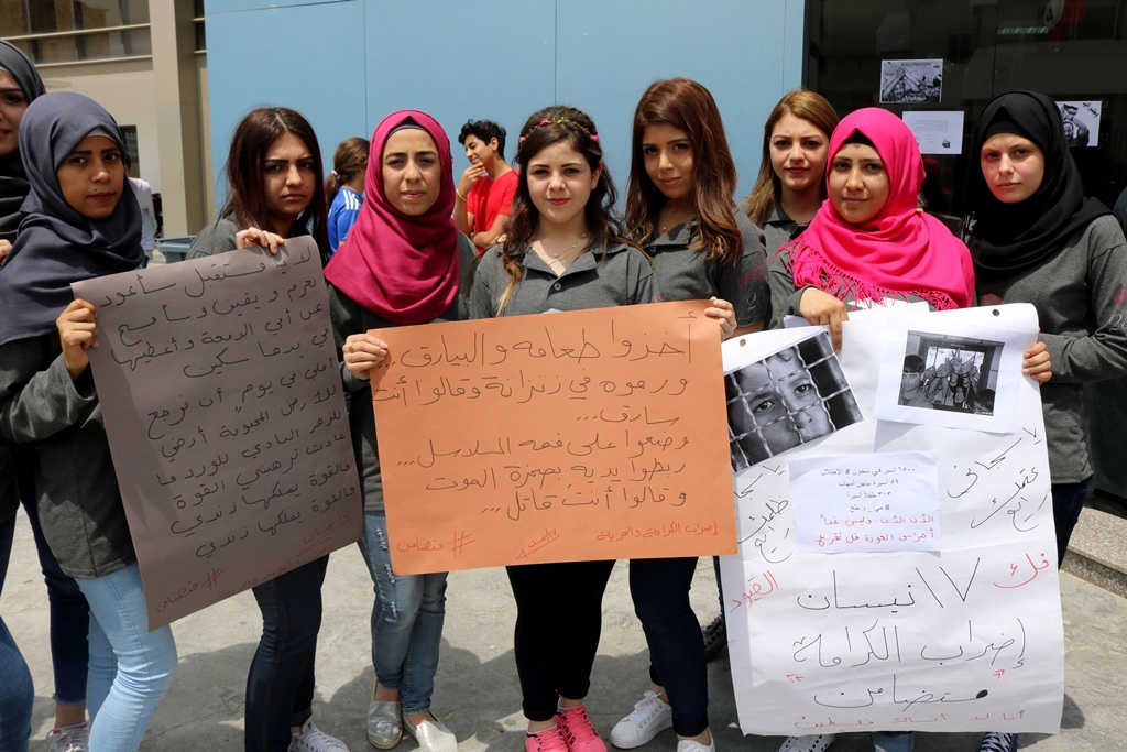 تضامناً مع الأسرى الفلسطينيين في سجون الاحتلال والمضربين عن الطعام لليوم الحادي عشر على التوالي في معركة "الحرية والكرامة"، نظّم طلاب معهد صيدا التقني التابع لجمعية المواساة وقفة تضامنية مع الأسرى.