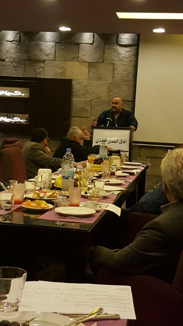 عرض القيّمون على اللقاء لإنجازات البلدية ومشاريعها وطموحها المستقبلي، وكان العرض واقعياً وموضوعياً وتميز بالصراحة التي تحدث فيها رئيس البلدية الدكتور علي العبدالله ونائب الرئيس الدكتور علي حمادي، وبلغة حاكت الواقع بمصاعبه وعوائقه وبالإمكانات المتوفرة لمواجهته والتغلب على سلبياته.