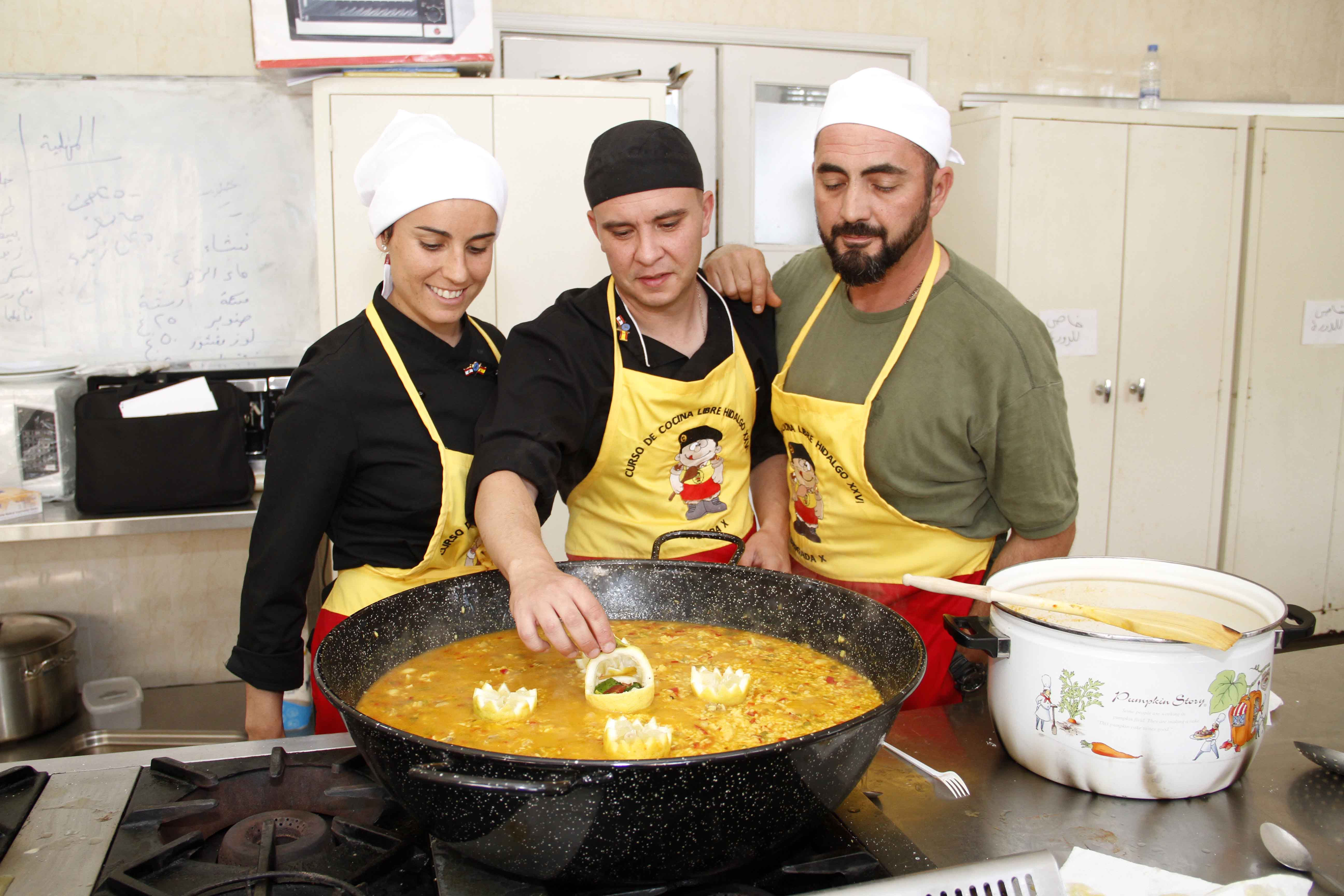 1. UNIFIL Spanish soldiers have been sharing catering and cooking with young Lebanese students in the Technical School of Marjayoun. During five days, on every Saturday from 1st April to 6th May, 25 students had learned Spanish cuisine and at the same time they taught Spanish soldiers Lebanese cuisine. Dishes such as paella, tabbouleh, cold tomato soup, called salmorejo or hummus have been cooked in the School.