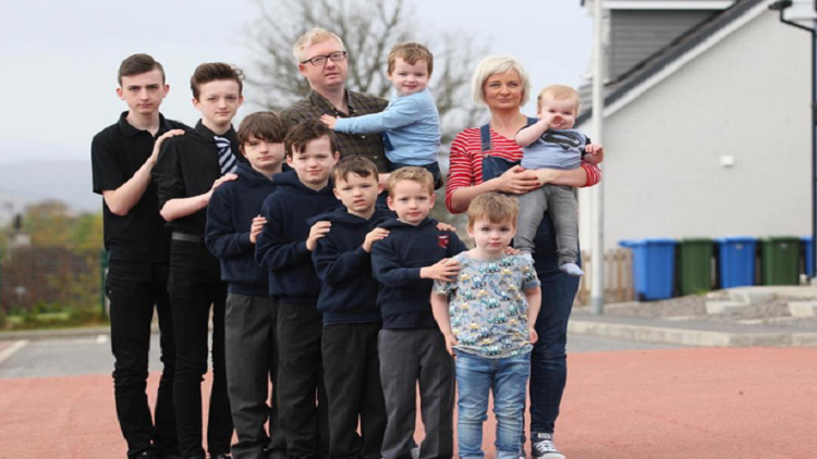 ويُعتقد أن الأم البالغة من العمر 37 عاما، وزوجها ديفيد (42 عاما)، هما أول زوجين في بريطانيا ينجبان 10 ذكور على التوالي.