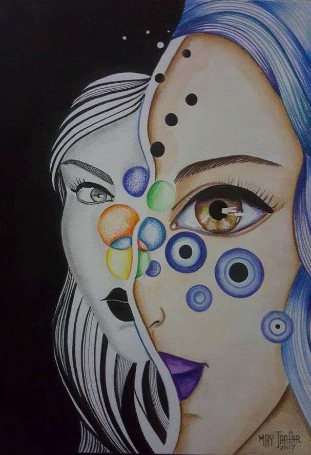 وبحسب مي فإن "كل لوحة تناولت الإنقاسم أحيانا بينها وبين ذاتها .. ما بين تحقيق مشاعرها ومراعاة البيئة والمجتمع من جهة ثانية".