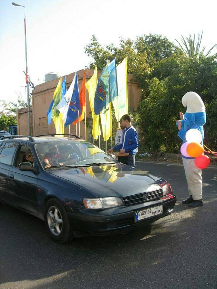 حيث استقبل الوافدين الى منطقة الجنوب بالأناشيد والأهازيج وببسمة ارتسمت على وجوه القادة والعناصر الذين وزعوا البالونات والهدايا والحلوى على السيارات