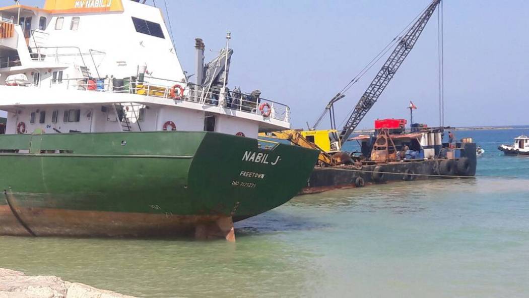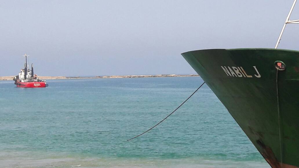 ومنذ ايام يستمر العمل على شفط الرمول من مكان تواجد الباخرة، كما يجري نقل كل ما هو زائد وغير ضروري من داخل الباخرة كي ينقص وزنها مما يسهل في عملية جرها.