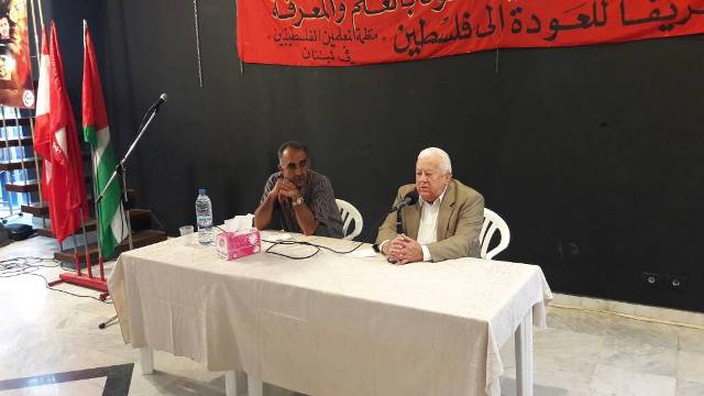 في الذكرى التاسعة والستين للنكبة، وتضامنا مع الحركة الأسيرة في معركة الأمعاء الخاوية، أقامت الجبهة الشعبية لتحرير فلسطين، ومنظمة المعلمين الفلسطينيين، في منطقة صيدا لقاء مع المناضل الوطني والقومي الأستاذ غالب بو مصلح، تحت عنوان" العولمة وتغييرات النظامين العالمي والإقليمي، وانعكاسها على القضية الفلسطينية، السبت 20/5/2017، في مركز معروف سعد الثقافي في صيدا. حضر اللقاء فصائل العمل الوطني اللبناني والفلسطيني، واللجان الشعبية، وقيادة الجبهة الشعبية في منطقة صيدا وكوادرها، وشخصيات تربوية، واجتماعية ووطنية افتتح الدكتور طلال أبو جاموس اللقاء بترحيب بالحضور،ومن ثم بالنشيدين الوطنيين اللبناني والفلسطيني، مشيرًا إلى أن الجبهة الشعبية، ومنذ انطلاقتها كان شعارها الفكر يوجه البندقية، لأن الفكرهو طريق أساسي في تغييرالعقول والنفوس.