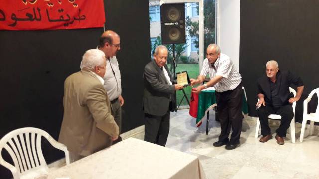 وفي نهاية مداخلته، قدم عدد من الحضور مداخلات، كما قدم أبو احمد سالم مسؤول الجبهة الشعبية في منطقة صيدا و الدكتور عبد رجا سرحان درع الجبهة الشعبية للمناضل الاستاذ غالب بو مصلح .