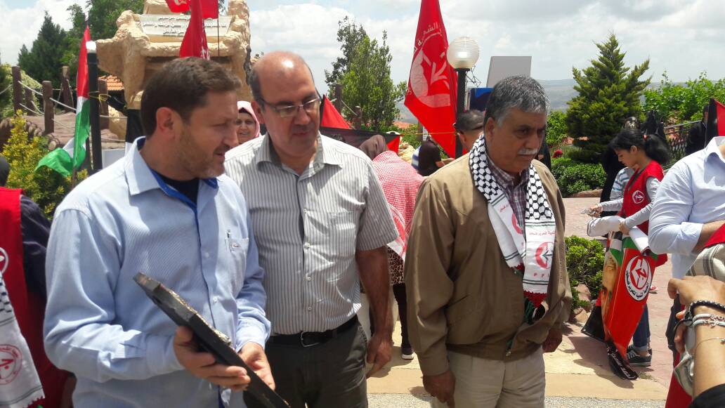 كلمة حزب الله ألقاها الشيخ أحمد مراد معاون مسؤول المنطقة الأولى في الجنوب، استهلها بتوجيه التحية للحضور وللأسرى في السجون الصهيونية، مشيرا إلى أن انتصار25 أيار أثبت إمكانية هزيمة العدو الصهيوني، مشيرا إلى أن هذا النصر جعل رأس نظام الإرهاب في العالم ليصف حزب الله بالإرهاب، وتناسى أن من باع فلسطين، ويدعم الصهاينة والجماعات التكفيرية هم رؤوس الارهاب في العالم و تابع أن حزب الله هو حزب مقاوم يدافع عن فلسطين، وعن الشعوب المظلومة و المقهورة، وقد أشار في كلمته إلى قمة الرياض التي جمع فيها لترامب مئات المليارات من الدولارات، وأدعياء الدين و العروبة يجمعون أمراء و مشايخ ليبايعوا شيخ الإرهاب في العالم ، وفي ذكرى النكبة وذكرى الانتصار اللتين تتزامنان مع معركة الأسرى المضربين عن الطعام مع قائد الجبهة الشعبية، ومع كل الشخصيات القيادية ومع كل الأسرى المشاركين بالإضراب عن الطعام ليذلوا الاحتلال و ينالوا الحرية عاهدهم أن حزب الله و المقاومة الإسلامية سيبقون أوفياء لفلسطين حتى يبزغ النصر وتتحقق الحرية المنشودة.