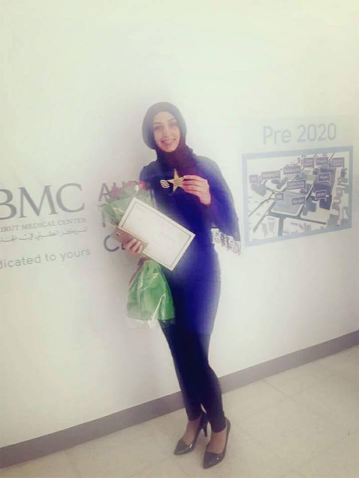 إستطاعت ملاك، بفضل تميزها العلمي والمهني وبفضل حرصها وحسن اتقانها لعملها أن تحصد الجائزة الاولى لافضل ممرضة في ذلك القسم.