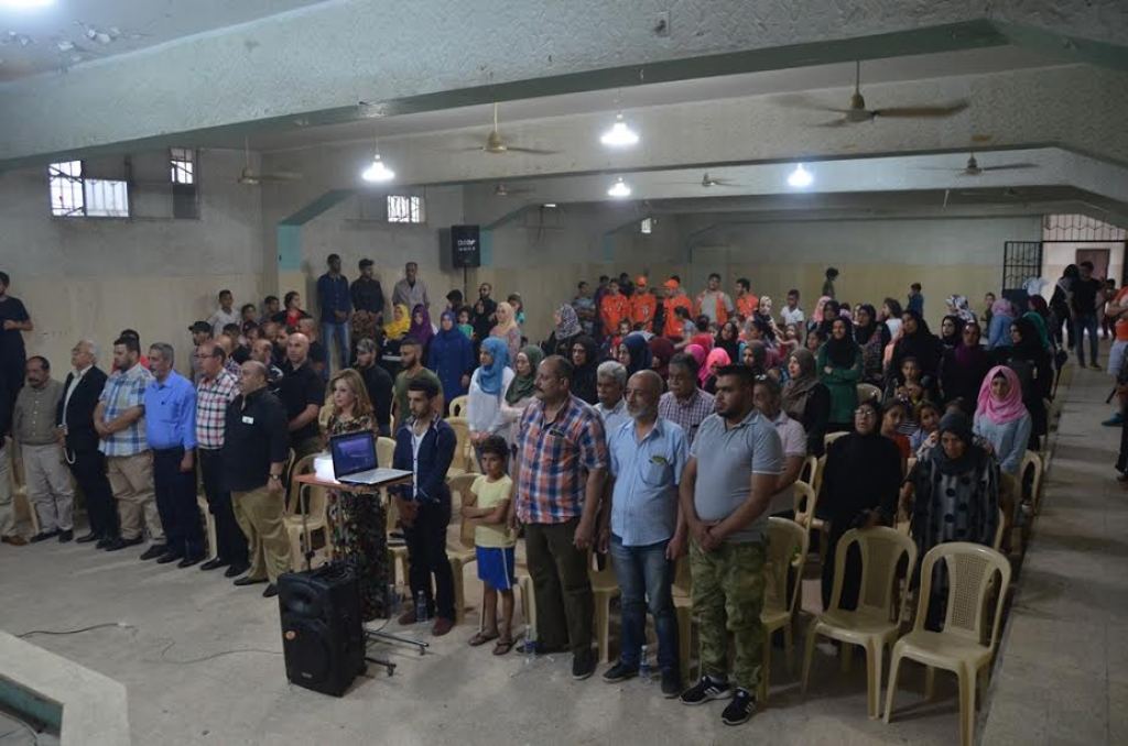 استهل النشاط بالوقوف دقيقة صمت ووفاء لدماء الشهداء، ثم بالنشيد الوطني الفلسطيني، تلتهما كلمة للآنسة إسراء مصطفى، حيث رحبت بالحضور، مشيرة إلى أنه يمر الخامس عشر من أيار ككل سنة ذكرى مريرة وقاسية على كل الشعب الفلسطيني، ففيه يتوقف الزمن لنجر بعدها ذيول الخيبة والألم للواقع الفلسطيني المرير الذي نمر فيه في الداخل و الشتات، ومحاولة منا للنجاة من العواصف العربية والدولية التي تعصف بنا، حيث تجعلنا كالمعلقين على معاهدات واتفاقات هشه كان من نتيجتها العديد من النكبات الفلسطينية والمستمرة، وعمليات التهجير الممنهجة لطمس القضية الفلسطينية ومعالمها .