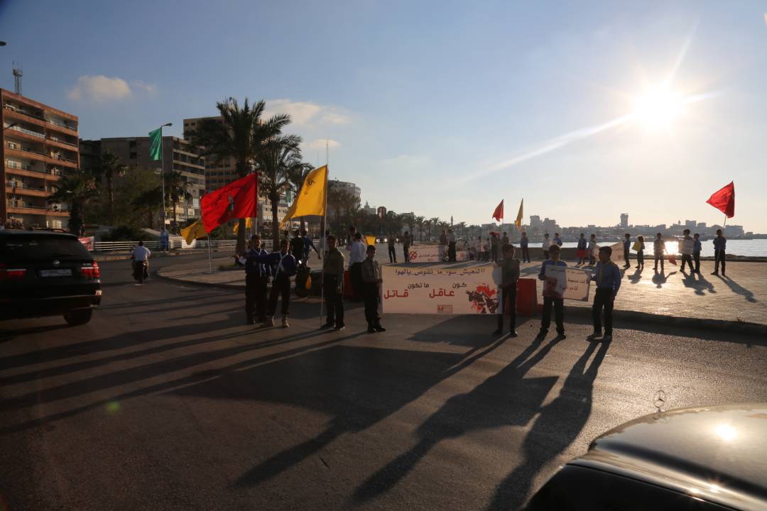 وضمن فعاليات التجمع الأهلي لمكافحة إطلاق النار العشوائي التي تقيمها كشافة الإمام المهدي (عجل الله تعالى فرجه)، أقام قطاع صور حاجز محبة عند دوار الشهيد هيثم دبوق في مدينة صور وزّعت خلاله منشورات توعويّة حول مخاطر إطلاق الرصاص الطائش كما تخلّاه وقفة إحتجاجية للكشفيين رفعوا خلالها لافتات تطالب بوقف ظاهرة إطلاق الرصاص العشوائي