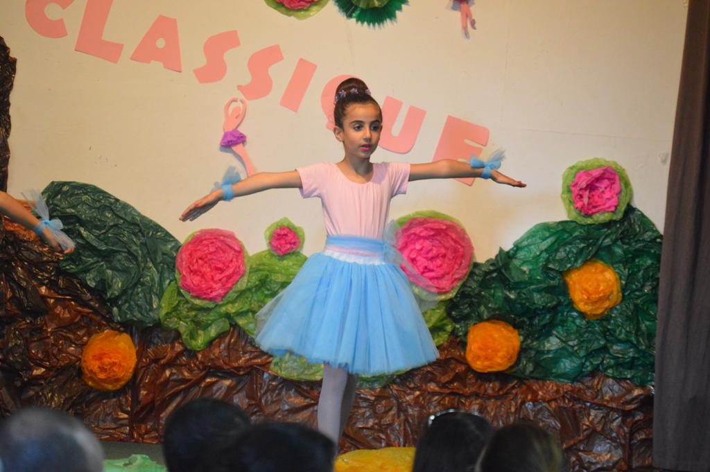 ثم تألّقت الطالبات ب 14 لوحة فنية على أنغام أرقى وأشهر المعزوفات العالمية، تميّزت بتفاعل الأهل والجمهور.