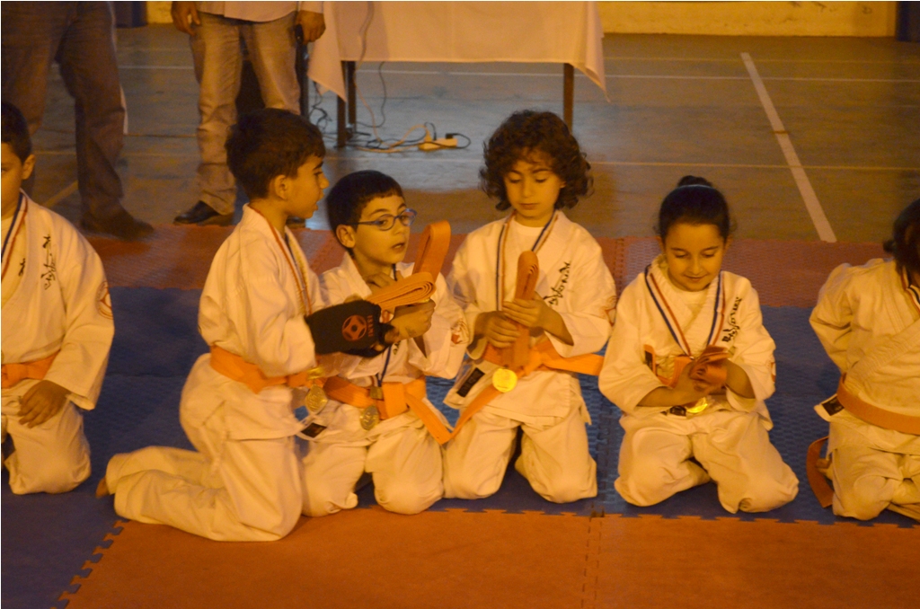 وبعد الانتهاء من الاختبارات سلّم رئيس المدرسة الدكتور روجير داغر اللاعبين الأحزمة والميداليات.