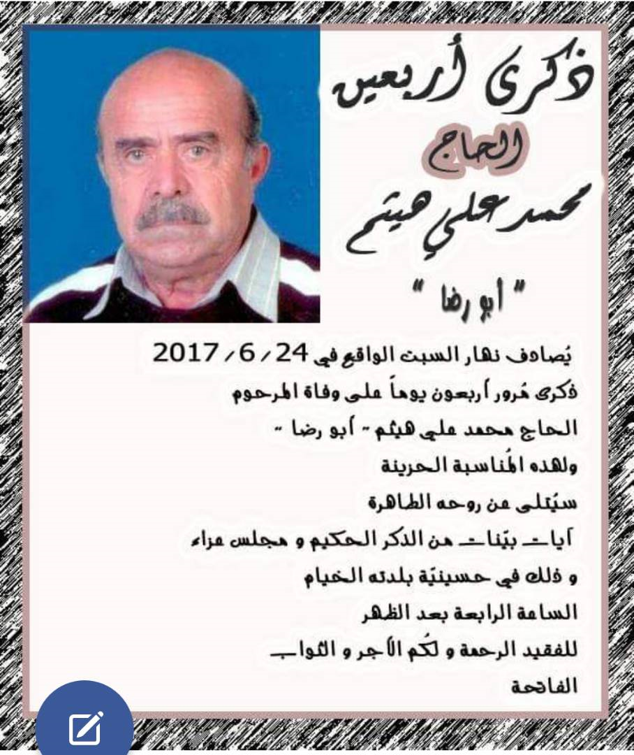 سجل التعازي بالمرحوم الحاج محمّد علي حسين هيثم (أبو رضا)