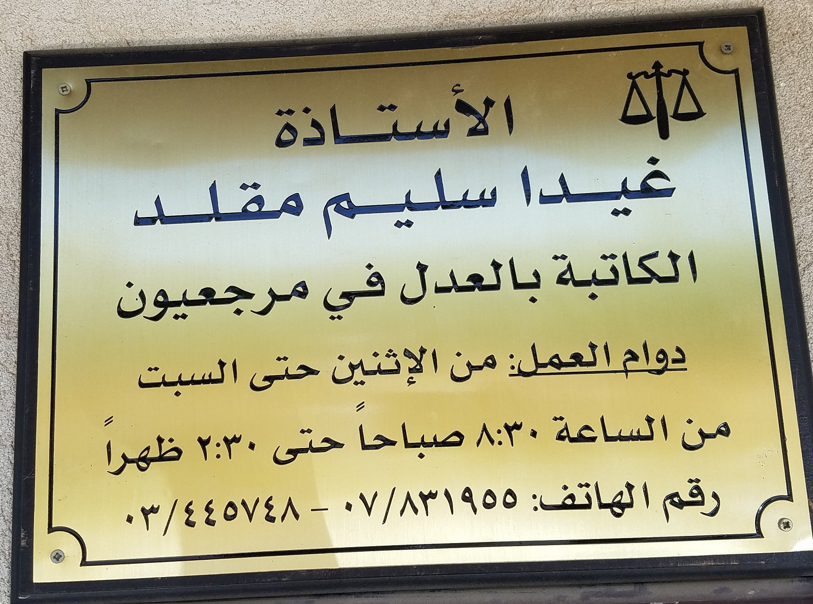 لفتني في مكتب كاتبة عدل مرجعيون، الأستاذة غيدا مقلّد، لوحة يعبّر فيها والدها السيّد سليم مقلّد عن فخره واعتزازه بابنته بقصيدة جميلة مخطوطة عليها، جاء فيها ما يلي: