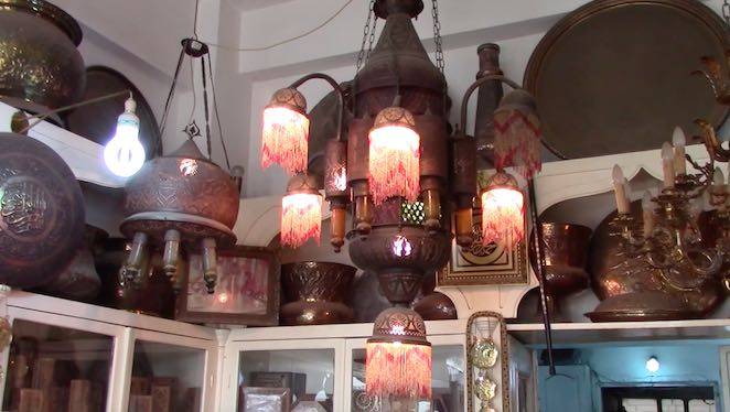 وفي ردهة داخلية، تكتظ النحاسيات العتيقة والتقليدية بالأوعية المصنعة، وفيها العديد من الثريات، والمتدليات، وسواها من قطع.