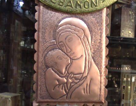 ومن بين اللوحات يلاحظ وجود لوحات ذات طابع كنسي، مثل صورة السيدة مريم العذراء، وأخرى تمثل محطات من حياة السيد المسيح، ويعلق حسون عليها بالقول: "نحن نصنع لكل الناس، وهناك كثيرون من أخواننا المسيحيين يطلبون لوحات، ونحن نلبي طلبات الجميع".