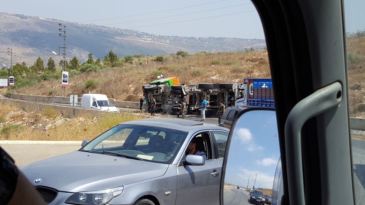 انقلبت، عصر اليوم، شاحنة نقل كبيرة على طريق النبطية كفرتبنيت- الخردلي بعدما فقد سائقها السيطرة عليها،الذي اصيب برضوض مختلفة، وحالت العناية الاليهة دون وقع اصابات في السيارات المارة في المنطقة، وتسبب الحادث بتسرب مادة المازوت على الطريق الامر الذي دفع بالقوى الامنية لاقفال الطريق لفترة قصيرة لحين وضع مادة الرمل على المازوت المتسرب على الطريق كما شهدت المنطقة ازدحام سير، حيث عملت القوى الامنية على تسهيل حركة المرور في الاتجهاين، كما فتحت تحقيقا في ملابسات الحادث.