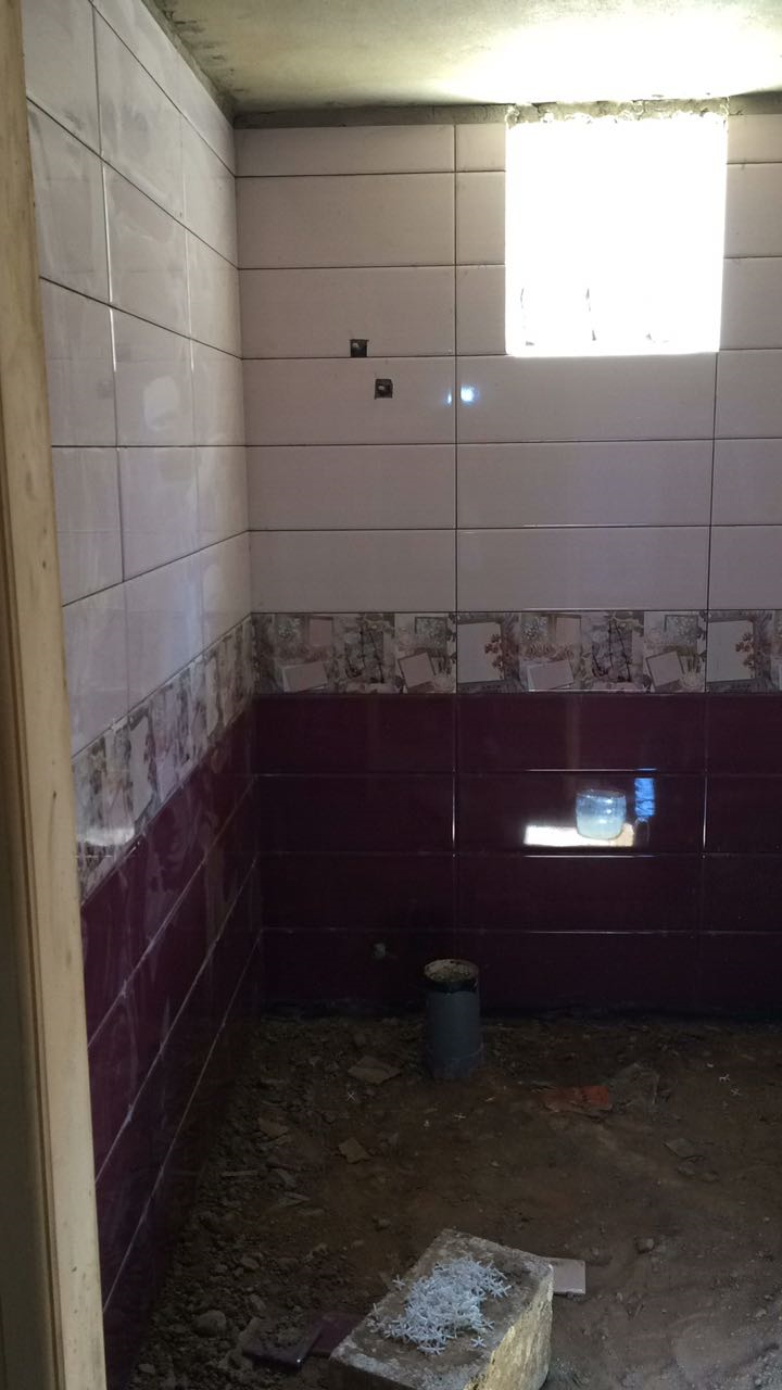 بعد الانتهاء من صبّ السطح الأخير بدأنا العمل بتركيب البلاط ذات الجودة والفخامة.